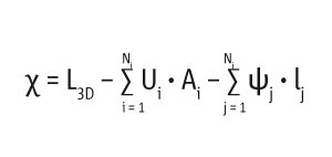 Aby obliczyć liniowy współczynnik przenikania ciepła ψ należy od wartości współczynnika sprzężenia cieplnego L2D odjąć straty ciepła uwzględnione współczynnikiem przenikania ciepła U.